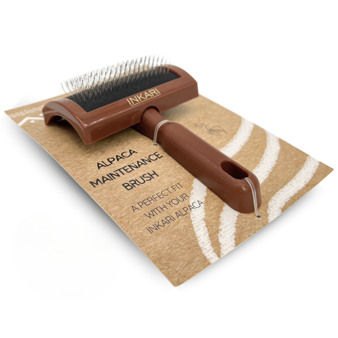 Denne skånsomme børste er perfekt til at holde din alpaca bamse blød, fluffy og fri for filtret pels. De fine børstehår glatter forsigtigt fibrene ud uden at beskadige den bløde pels, så din bamse altid ser pæn og velplejet ud.