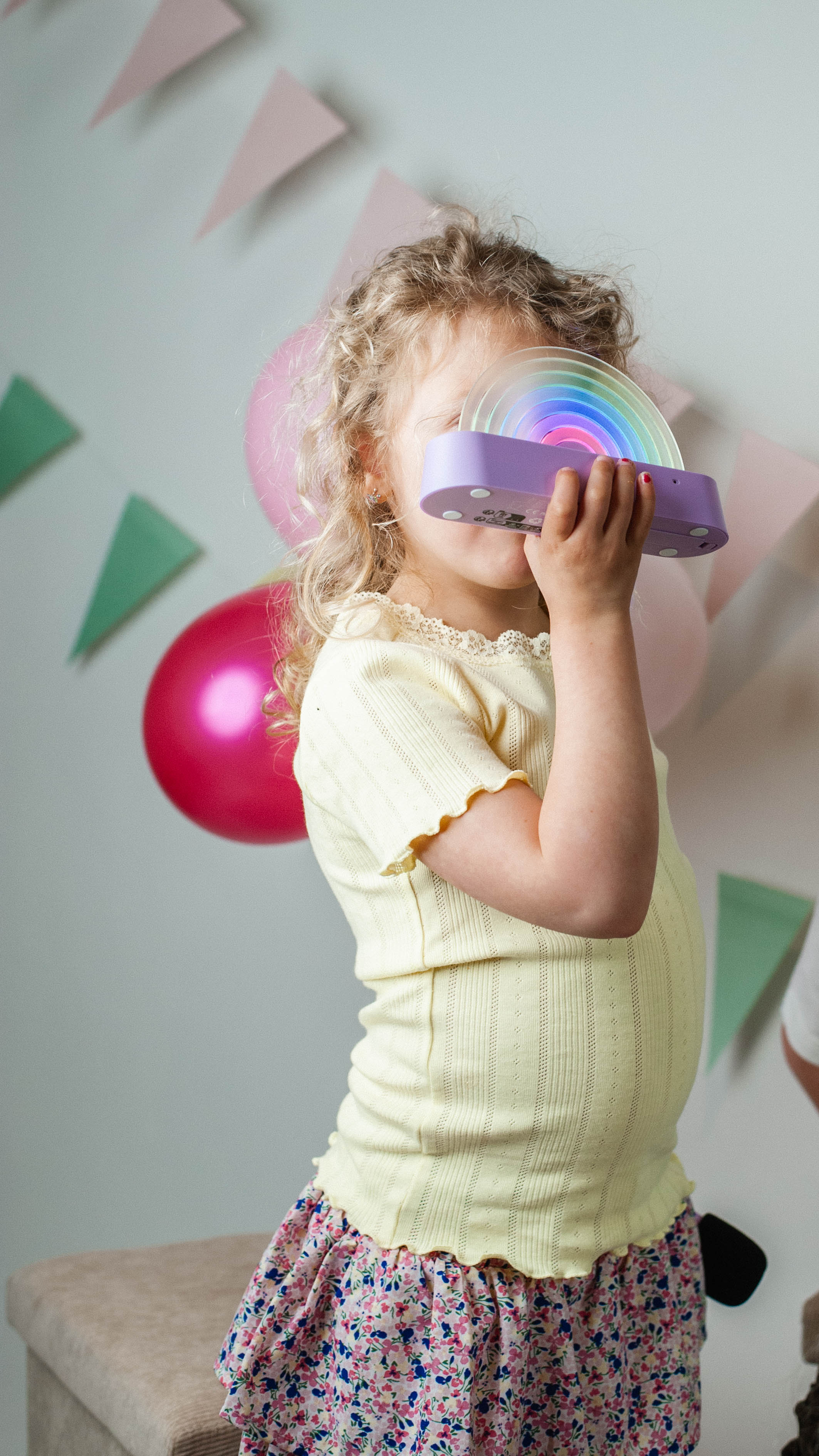 Oplev vores søde regnbue lampe - med levende farver og dynamiske bevægelser, der synkroniseres med din musik.