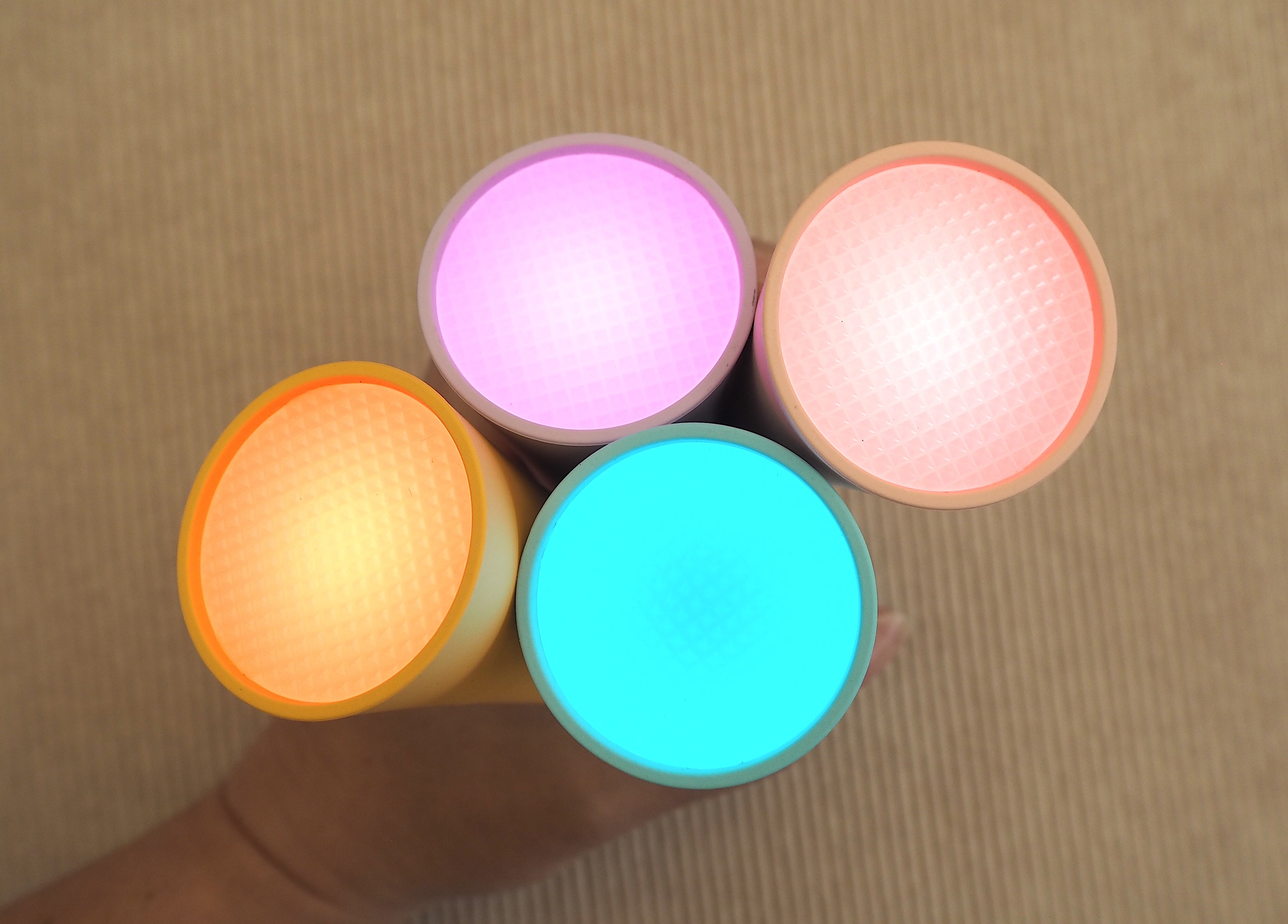 - Farveskift: Tilgængelig i blå, gul, rosa og lilla, hver lommelygte skifter til lys der matcher lommelygten.