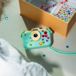 Men det her er mere end bare et kamera – det er en hel oplevelse! Hvert sæt indeholder en matchende smykkeæske, en praktisk strop og et ark med diamantklistermærker, så børnene kan personliggøre deres kamera og passe godt på deres små skatte. Det bløde mintfarvede silikoneetui gør det behageligt at holde, og de medfølgende klistermærker og lykkebringer giver ekstra personlighed.
