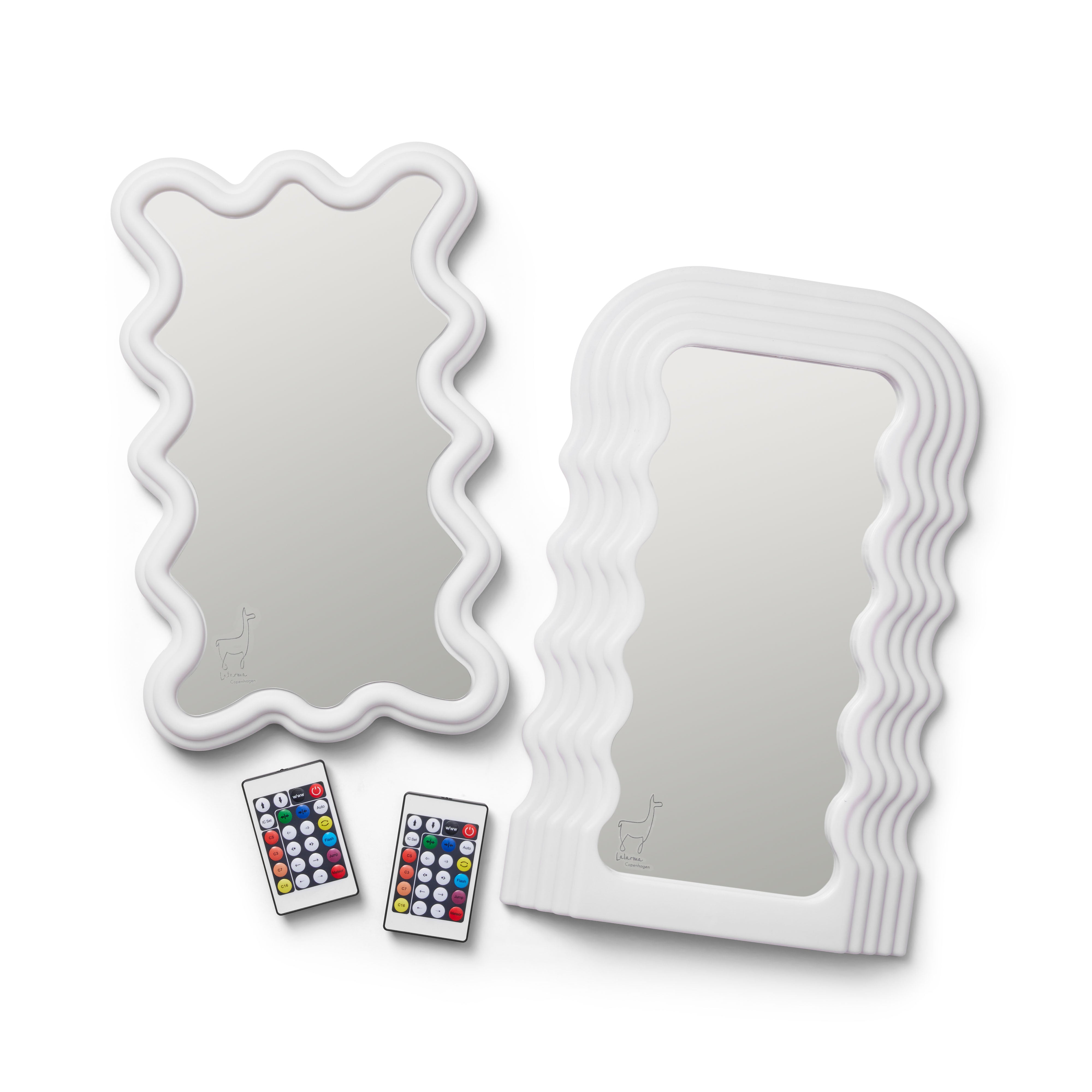 Skab magi på børneværelset med Lalarma Magic Glow Mirror! Dette smarte LED-spejl reagerer på musik og laver sit helt eget lysshow med 16 farver og sjove lyseffekter. Du styrer det nemt med fjernbetjeningen eller LotusLamp X appen, hvor du kan justere lysstyrke, farver og blinkehastighed.