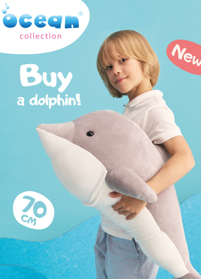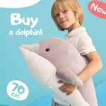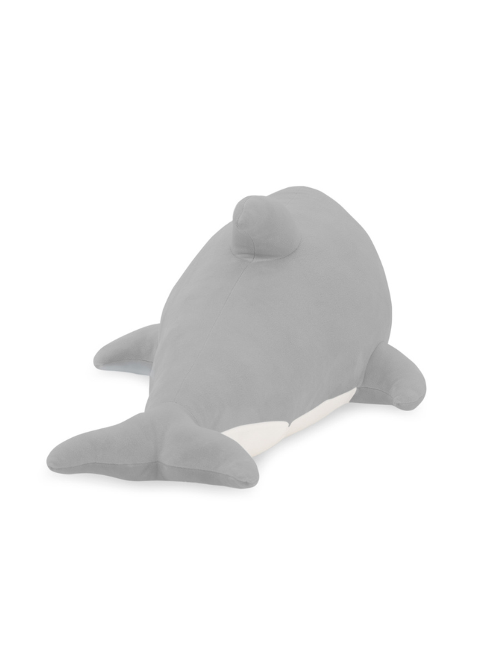 Denne store, bløde delfin er lige så kærlig, som den er krammeklar! Med sit glade udtryk og superbløde krop er den klar til at tage med på alt fra puttetid og godnathistorier til vilde fantasirejser under havet.